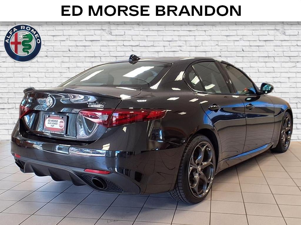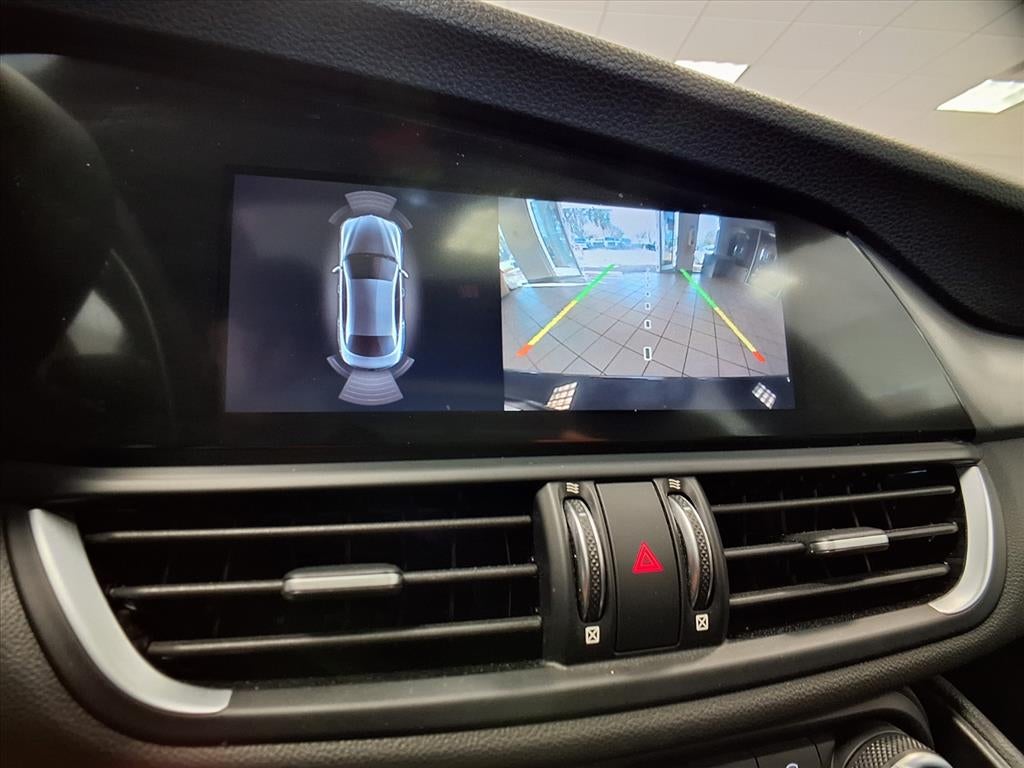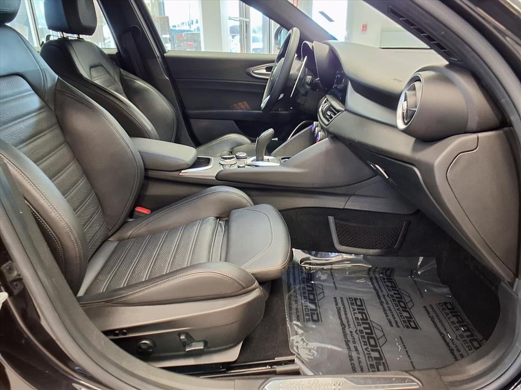Equipped with Active Assist 2 Package Ti Sport (Active Blind Spot Assist, Adaptive Cruise Control w/Stop, Auto High Beam Headlamp Control, Auto-Dimming Exterior Mirrors, Driver Attention Alert, Highway Assist System, Infrared Windshield, Intelligent Speed Assist (ISA), Lane Keep Assist, Traffic Jam Assist, and Traffic Sign Recognition), Nero Edizione (Ti Sport) (Dark Miron Badging, Dark Miron Exterior Mirror Caps, Dark Miron V Scudetto Grille, and Monochromatic Center Wheel Caps), Quick Order Package 22U Ti Sport (Aluminum Interior Trim, Aluminum Steering Column Mounted Paddle Shifters, Black Headliner, Bright Aluminum Pedals, Colored Brake Calipers, Dark Exhaust Tips, Gloss Black Window Surround Moldings, Limited Slip Differential Rear Axle, Manual Adjustable Thigh Support, Perforated Leather Shift Knob, Power Adjust 8-Way Driver Seat, Power Adjustable Bolster, Q2 Badge, Sport Front & Rear Fascias, Sport Leather Seats, Sport Leather-Wrapped Steering Wheel, and Wheels: 19 x 8.0 Bright 5-Hole Aluminum), Giulia Ti, 4D Sedan, I4, 8-Speed Automatic, RWD, Vulcano Black Metallic, Black Leather, 4-Wheel Disc Brakes, 8 Speakers, ABS brakes, Air Conditioning, Alloy wheels, AM/FM radio: SiriusXM, Apple CarPlay/Android Auto, Auto-dimming Rear-View mirror, Automatic temperature control, Brake assist, Bumpers: body-