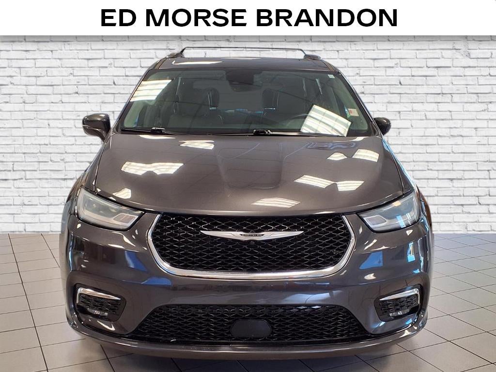 Equipped with Quick Order Package 27L, Uconnect Theater Family Group (1-Year Trial (Registration Required), 115V Auxiliary Power Outlet, 220 Amp Alternator, 3-Channel Video Remote Control, 3-Channel Wireless Headphones (RF), 4G LTE Wi-Fi Hot Spot, Blu-Ray/DVD Player/USB Port, Famcam Interior Camera, Front/Rear 1-Touch Up/Down Power Windows, Global Telematics Box Module (TBM), Hands Free Power Liftgate, Hands Free Sliding Doors, Heated Second Row Seats, High Definition Multimedia Interface, KeySense, Seatback Video Screens, SiriusXM Guardian - Included Trial (B), Stow N Vac Integrated Vacuum, and Video USB Port), Pacifica Touring L, 4D Passenger Van, 3.6L V6 24V VVT, 9-Speed 948TE Automatic, FWD, Granite Crystal Metallic Clearcoat, Alloy/Black Leather, 10.1 Touchscreen Display, 17 x 7.0 Aluminum Wheels, 3.25 Axle Ratio, 3rd row seats: split-bench, 4-Wheel Disc Brakes, 6 Speakers, ABS brakes, Air Conditioning, Alloy Seats, Alloy wheels, AM/FM radio: SiriusXM, Apple CarPlay, Apple CarPlay/Android Auto, Auto-dimming Rear-View mirror, Automatic temperature control, Brake assist, Bumpers: body-color, Compass, Delay-off headlights, Disassociated Touchscreen Display, Driver door bin, Driver vanity mirror, Driver's Seat Mounted Armrest, Dual front impact airbags, Dual front side impact airbags, Electronic Stability Control, Four wheel independent suspension, Front anti-roll bar, Front Bucket Seats, Front dual zone A/C, Front Fascia Air Deflectors, Front fog lights, Front reading lights, Fully automatic headlights, Garage door transmitter: HomeLink, Googl
