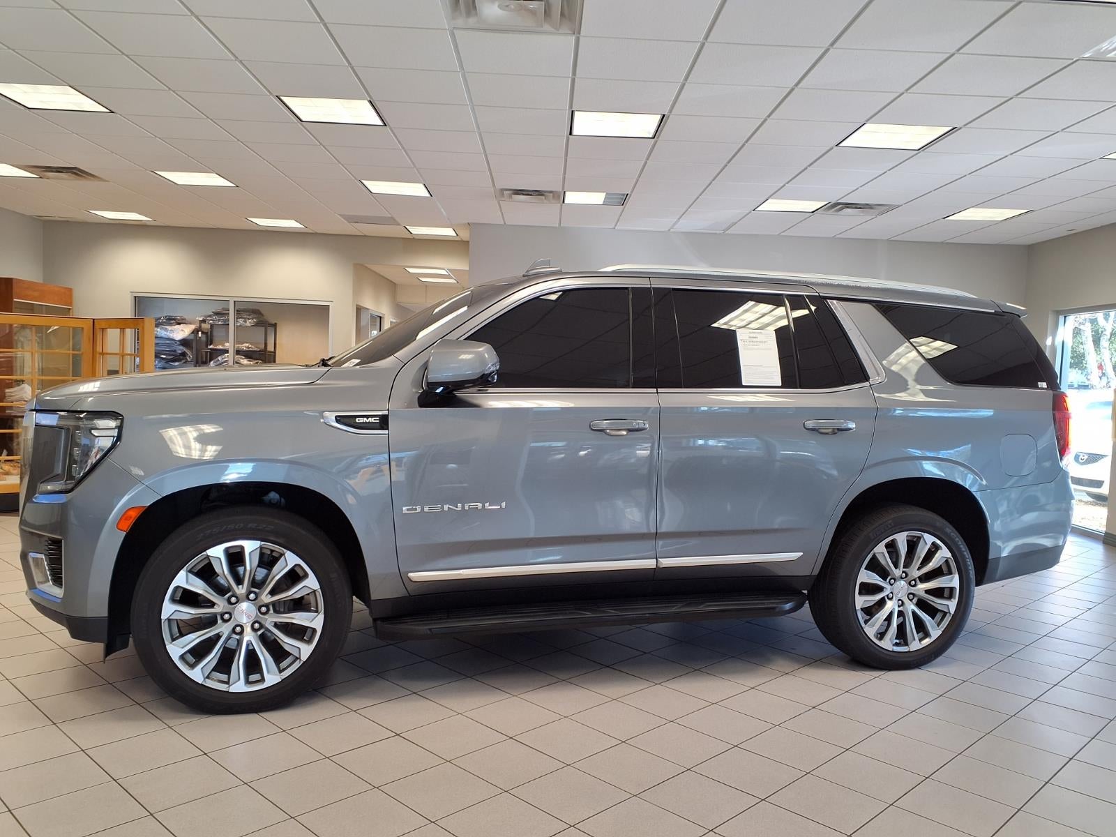 Equipped with Preferred Equipment Group 5SA (12-Way Power Seat Adjusters, 15 Diagonal Multi-Color Head-Up Display, 2 Presets For Outside Rearview Mirrors, 3rd Row 60/40 Power-Folding Split-Bench Seat, Bright Front & Rear Door Sill Plates, Chrome Door Handles w/Body-Color Strip, Dual Exhaust System, Galvano Bodyside Moldings, Hands-Free Power Programmable Rear Liftgate, HD Surround Vision, Heated & Ventilated Driver & Front Passenger Seats, Heated 2nd Row Outboard Position Seats, Heated Automatic Steering Wheel, Heated Driver & Front Passenger Seats, Inside Rear-View Auto-Dimming Mirror, Outside Heated Power-Adjustable Mirrors, Power Release 2nd Row Bucket Seats, Power Tilt & Telescopic Steering Column, Rear Pedestrian Alert, Safety Alert Seat, and Universal Home Remote), Yukon Denali, 4D Sport Utility, EcoTec3 6.2L V8, 10-Speed Automatic with Overdrive, RWD, Satin Steel Metallic, Jet Black Leather, Apple CarPlay/Android Auto, Heated door mirrors, Rear Seat Media System, 14 Speakers, 3.23 Rear Axle Ratio, 3rd row seats: split-bench, 4-Wheel Disc Brakes, ABS brakes, Adaptive suspension, Air Conditioning, Alloy wheels, AM/FM radio: SiriusXM with 360L, Auto High-beam Headlights, Auto-dimming door mirrors, Auto-dimming Rear-View mirror, Auto-leveling suspension, Automatic Emergency Braking, Automatic temperature control, Bodyside moldings, Bose 14-Speaker Surround w/CenterPoint, Brake assist, Bumpers: body-color, Compass, D