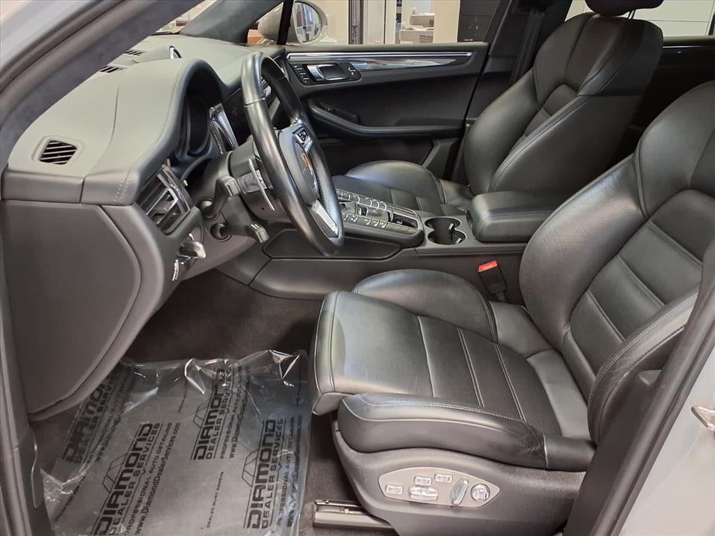 Equipped with Leather Package Seat Trim, HVAC memory, 14 Speakers, 18-Way Adaptive Sport Seats, 4-Wheel Disc Brakes, ABS brakes, Adaptive suspension, Air Conditioning, Alloy wheels, AM/FM radio: SiriusXM, Apple CarPlay, Auto tilt-away steering wheel, Automatic temperature control, Axle Ratio: 4.13, Brake assist, Bumpers: body-color, Delay-off headlights, Driver door bin, Driver vanity mirror, Dual front impact airbags, Dual front side impact airbags, Electronic Stability Control, Emergency communication system: Car Connect Services, Exterior Parking Camera Rear, Four wheel independent suspension, Front anti-roll bar, Front Bucket Seats, Front Center Armrest, Front dual zone A/C, Front fog lights, Front reading lights, Fully automatic headlights, Garage door transmitter: HomeLink, Heated door mirrors, Heated front seats, Heated steering wheel, Illuminated entry, Leather Shift Knob, Low tire pressure warning, Memory Pkg, Memory seat, Navigation System, Occupant sensing airbag, Outside temperature display, Overhead airbag, Overhead console, Panic alarm, Passenger door bin, Passenger vanity mirror, Porsche Communication Management, Power door mirrors, Power driver seat, Power Liftgate, Power passenger seat, Power steering, Power windows, Radio data system, Rain sensing wipers, Rear air conditioning, Rear anti-roll bar, Rear reading lights, Rear seat center armrest, Rear side impact airbag, Rear window defroster, Rear window wiper, Remote keyless entry, Security system, Speed control, Speed-sensing steering, Split folding rear seat, Spoiler, Sport steering wheel, Steering wheel memory, Steering wheel mounted audio controls, Tachometer, Telescoping steering wheel, Tilt steering wheel, Traction control, Trip computer, Turn signal indicator mirrors, Variably intermittent wipers, and Wheels: 20 Macan Turbo.