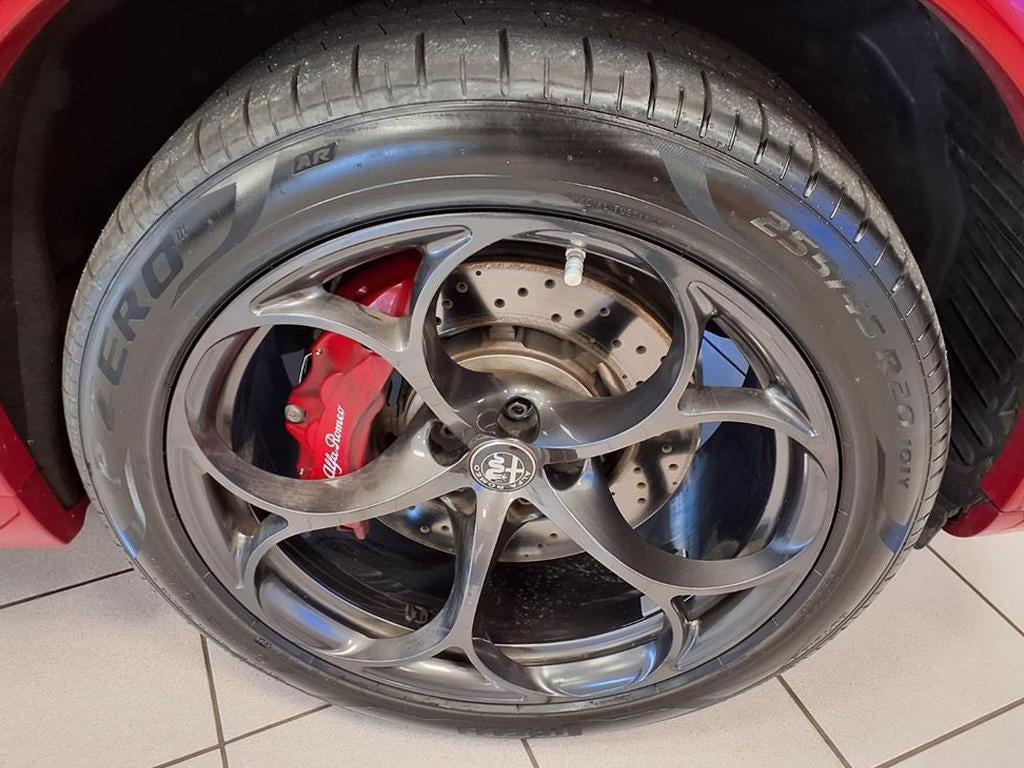 Equipped with Active Assist Plus Package (Active Blind Spot Assist, Driver Attention Alert, Highway Assist System, Intelligent Speed Assist (ISA), Lane Keep Assist, Traffic Jam Assist, and Traffic Sign Recognition), Quick Order Package 25P Quadrifoglio, Alfa Romeo Certified Pre-Owned Certified, 14 Speakers, 3.73 Axle Ratio, 4-Wheel Disc Brakes, ABS brakes, Adaptive suspension, Air Conditioning, Alloy wheels, AM/FM radio: SiriusXM, Apple CarPlay/Android Auto, Auto High-beam Headlights, Auto-dimming door mirrors, Auto-dimming Rear-View mirror, Automatic temperature control, Brake assist, Bumpers: body-color, Compass, Delay-off headlights, Driver door bin, Driver vanity mirror, Dual front impact airbags, Dual front side impact airbags, Dual-Pane Sunroof, Electronic Stability Control, Emergency communication system: SiriusXM Guardian - included trial, Four wheel independent suspension, Front anti-roll bar, Front Bucket Seats, Front Center Armrest, Front dual zone A/C, Front reading lights, Fully automatic headlights, Garage door transmitter, Gloss Black Shark Fin Antenna, Gloss Red Calipers w/White Script, harman/kardon Speakers, Headlight cleaning, Heated door mirrors, Heated front seats, Heated rear seats, Heated steering wheel, High intensity discharge headlights: Bi-Xenon, Illuminated entry, Knee airbag, Leather Shift Knob, Low tire pressure warning, Memory seat, Navigation System, Occupant sensing airbag, Outside temperature display, Overhead airbag, Overhead console, Panic alarm, ParkView Rear Back-Up Camera, Passenger door bin, Passenger vanity mirror, Power door mirrors, Power driver seat, Power Liftgate, Power passenger seat, Power steering, Power windows, Radio data system, Radio: AM/FM/HD 8.8 w/Navigation, Rain sensing wipers, Rear anti-roll bar, Rear audio controls, Rear fog lights, Rear reading lights, Rear seat center armrest, Rear