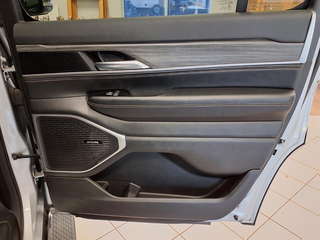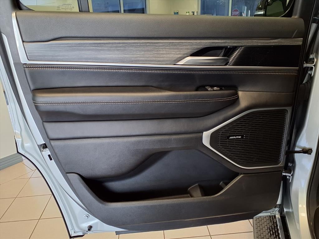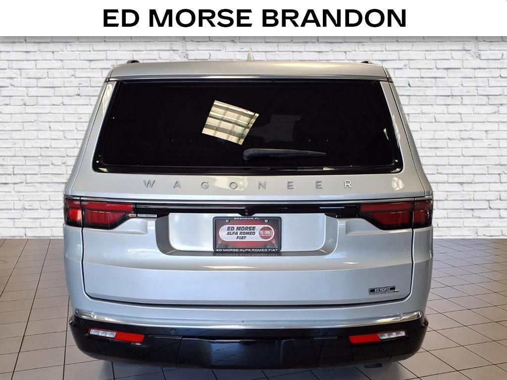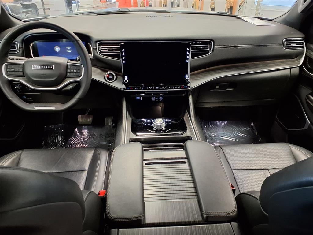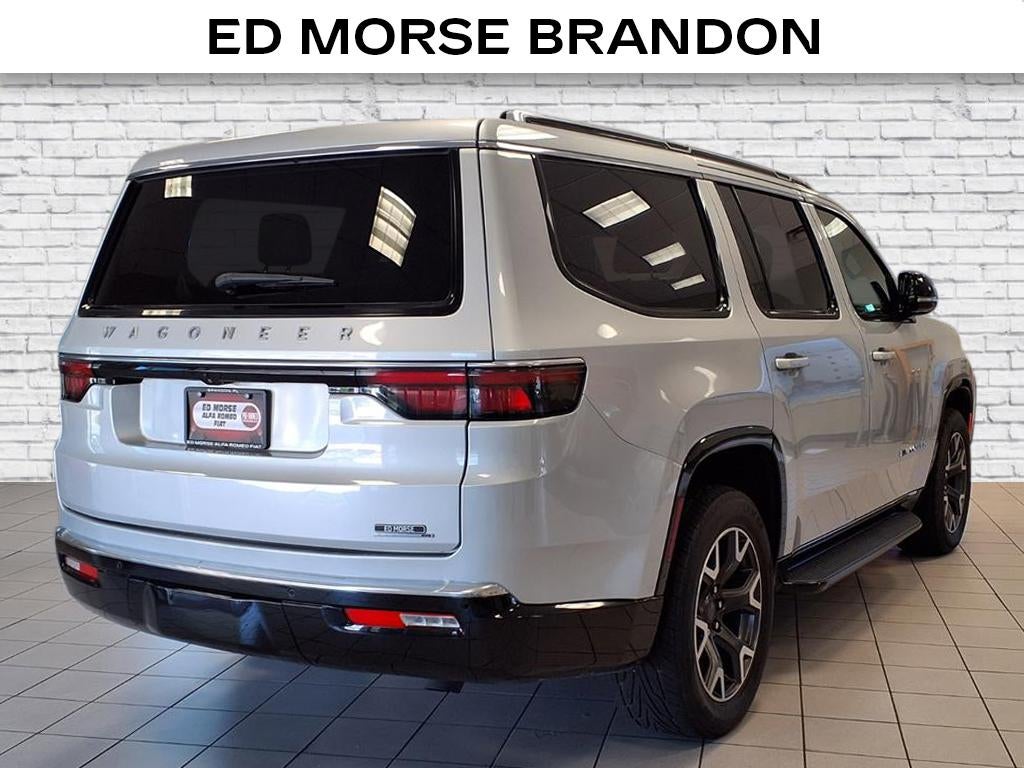 Equipped with Preferred Equipment Group, Quick Order Package 25N, Wagoneer Series III, 4D Sport Utility, 3.0L I6, 8-Speed Automatic, RWD, Silver Zynith, Black Leather, 10 Speakers, 20 x 9.0 Aluminum Wheels, 3.55 Rear Axle Ratio, 3rd row seats: bench, 4-Wheel Disc Brakes, ABS brakes, Adjustable pedals, Air Conditioning, Alloy wheels, AM/FM radio: SiriusXM with 360L, Anti-whiplash front head restraints, Audio memory, Auto High-beam Headlights, Auto-dimming door mirrors, Auto-dimming Rear-View mirror, Auto-leveling suspension, Automatic temperature control, Brake assist, Bumpers: body-color, Compass, Delay-off headlights, Driver door bin, Driver vanity mirror, Driver's Seat Mounted Armrest, Dual front impact airbags, Dual front side impact airbags, Electronic Stability Control, Emergency communication system: Automatic SOS Call, Exterior Parking Camera Rear, Four wheel independent suspension, Front anti-roll bar, Front Bucket Seats, Front Center Armrest w/Storage, Front dual zone A/C, Front fog lights, Front reading lights, Fully automatic headlights, Garage door transmitter, Genuine wood console insert, Genuine wood dashboard insert, Genuine wood door panel insert, Heated door mirrors, Heated front seats, Heated rear seats, Heated steering wheel, Illuminated entry, Knee airbag, Leather Trimmed Bucket Seats, Low tire pressure warning, Memory seat, Navigation System, Normal Duty Suspension, Occupant sensing airbag, Outside temperature display, Overhead airbag, Overhead console, Panic alarm, Passenger door bin, Passenger seat mounted armrest, Passenger vanity mirror, Pedal memory, Power adjustable front head restraints, Power door mirrors, Power driver seat, Power Liftgate, Power passenger seat, Power steering, Power windows, Radio data system, Radio: Uconnect 5 Nav w/10.1 Display, Rain sensing wipers, Rear air conditioning, Rear anti-roll bar, Rear dual zone A/C, Rear reading lights, Rear seat center armrest, Rear window defroster, Rear window wiper, Reclining 3rd row seat, Remote keyless entry, Security system, Speed control, Speed-sensing steering, Speed-Sensitive Wipers, Split folding rear seat, Steering wheel memory, Steering wheel mounted audio controls, Tachometer, Telescoping steering wheel, Tilt steering wheel, Traction control, Trip computer, Turn signa