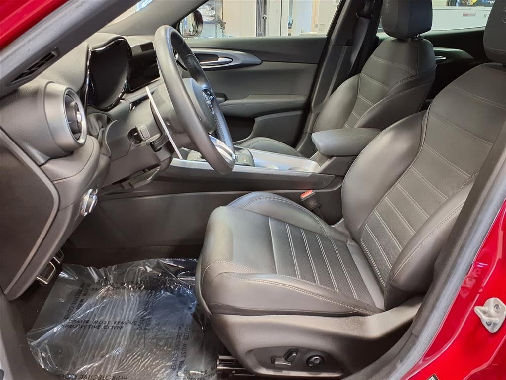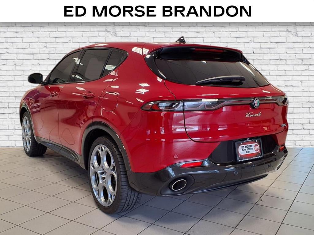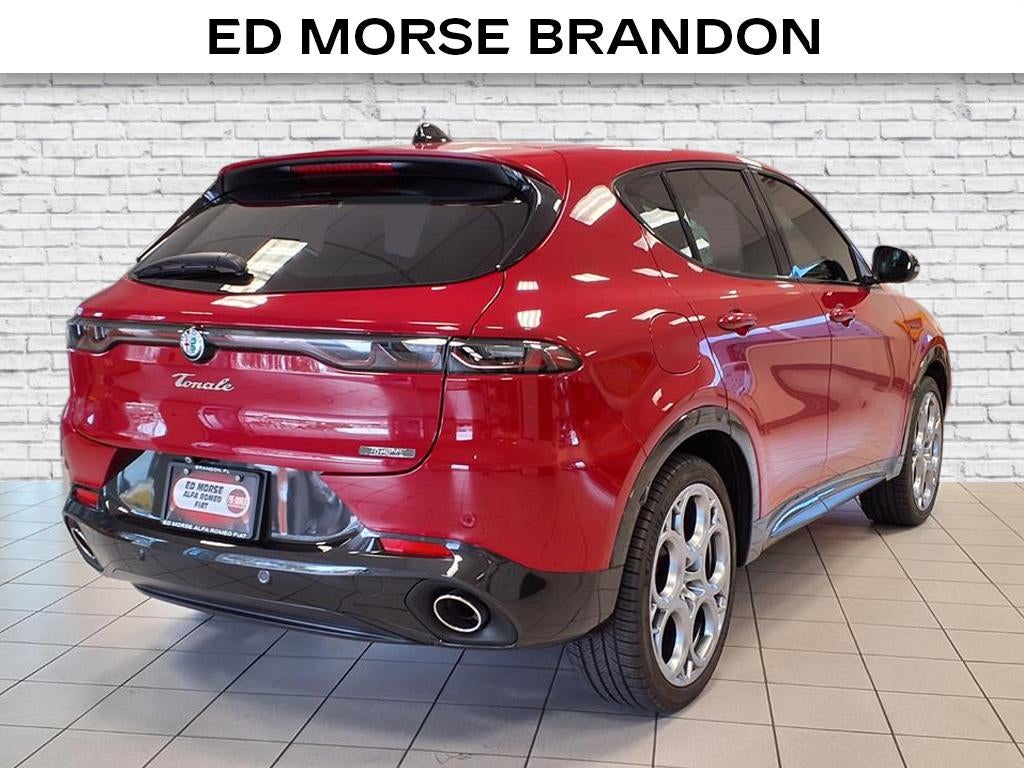 Equipped with Premium Interior Package (Perforated Leather Seat and Ventilated Front Seats), Quick Order Package 28E, Tonale Veloce, Alfa Romeo Certified Pre-Owned Certified, 4D Sport Utility, 1.3L I4, 6-Speed Automatic, AWD, Alfa Rosso, Black Leather, 4-Wheel Disc Brakes, 6 Speakers, ABS brakes, Adaptive suspension, Air Conditioning, Alloy wheels, AM/FM radio: SiriusXM, Anti-whiplash front head restraints, Apple CarPlay/Android Auto, Auto High-beam Headlights, Auto-dimming Rear-View mirror, Automatic temperature control, Brake assist, Bumpers: body-color, Compass, Delay-off headlights, Driver door bin, Driver vanity mirror, Dual front impact airbags, Dual front side impact airbags, Electronic Stability Control, Emergency communication system, Four wheel independent suspension, Front anti-roll bar, Front Bucket Seats, Front Center Armrest w/Storage, Front dual zone A/C, Front fog lights, Front reading lights, Fully automatic headlights, Garage door transmitter, Heated door mirrors, Heated front seats, Heated steering wheel, Illuminated entry, Knee airbag, Leather steering wheel, Low tire pressure warning, Navigation System, Occupant sensing airbag, Outside temperature display, Overhead airbag, Overhead console, Panic alarm, ParkView Rear Back-Up Camera, Passenger door bin, Passenger vanity mirror, Perforated Alcantara Seats, Power door mirrors, Power driver seat, Power Liftgate, Power Moonroof, Power passenger seat, Power steering, Power windows, Radio: Uconnect 5 Nav w/10.25 Display, Rain sensing wipers, Rear anti-roll bar, Rear seat center armrest, Rear window defroster, Rear window wiper, Remote keyless entry, Security system, Speed control, Split folding rear seat, Spoiler, Sport steering wheel, Steering wheel mounted audio controls, Tachometer, TBD Axle Ratio, Telescoping steering wheel, Tilt steering wheel, Traction control, Trip computer, Turn signal indicator mirrors, Variably intermittent wipers, Wheels: 19 x 8.0 Diamond Cut 5-Hole, a