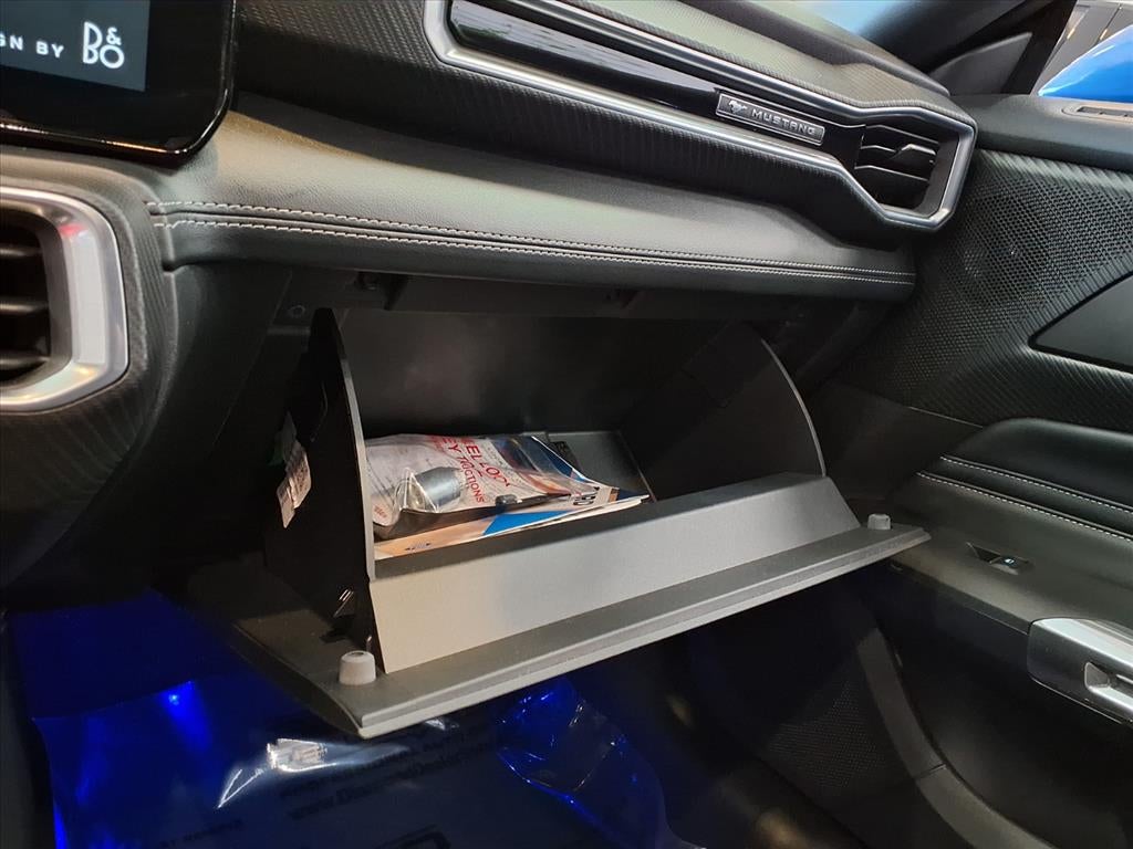 Equipped with Equipment Group 401A High Package (B&O Sound System by Bang & Olufsen, Illuminated Door-Sill Scuff Plates, Leather-Trimmed Bucket Seats w/Color Accents, and Memory Driver Seat & Mirrors), Ford Co-Pilot360 Assist+, Security Package (Active Anti-Theft System), Mustang GT Premium, 2D Coupe, 5.0L V8 Ti-VCT, 10-Speed Automatic, RWD, Atlas Blue Metallic, Black Onyx Leather, 4-Wheel Disc Brakes, 9 Speakers, ABS brakes, Air Conditioning, Alloy wheels, AM/FM radio: SiriusXM with 360L, AM/FM Stereo, Auto High-beam Headlights, Auto-dimming Rear-View mirror, Automatic temperature control, Brake assist, Bumpers: body-color, Climate Controlled Heated/Cooled Front Seats, Compass, Delay-off headlights, Driver door bin, Driver vanity mirror, Dual front impact airbags, Dual front side impact airbags, Electronic Stability Control, Emergency communication system: 911 Assist, Exterior Parking Camera Rear, Four wheel independent suspension, Front anti-roll bar, Front Bucket Seats, Front Center Armrest, Front dual zone A/C, Front reading lights, Fully automatic headlights, Garage door transmitter, HD Radio, Heated door mirrors, Heated front seats, Heated steering wheel, Illuminated entry, Knee airbag, Leather Shift Knob, Leather steering wheel, Leather-Trimmed Bucket Seats, Low tire pressure warning, Occupant sensing airbag, Outside temperature display, Overhead airbag, Overhead console, Panic alarm, Passenger door bin, Passenger vanity mirror, Power door mirrors, Power driver seat, Power passenger seat, Power steering, Power windows, Premium Floor Mats w/Metal Gray Accent Stitch, Radio data system, Rain sensing wipers, Rear anti-roll bar, Rear Parking Sensors, Rear window defroster, Remote keyless entry, Seat Belt w/Color Accent, SiriusXM w/360L, Speed control, Speed-sensing steering, Speed-Sensitive Wipers, Split folding rear seat, Spoiler, Sport steering wheel, Steering wheel mounted audio controls, SYNC 4.0 QNX, Tachometer, Telescoping steering wheel, Tilt steering wheel, Traction control, Trip computer, Turn signal indicator mirrors, Variably intermitte