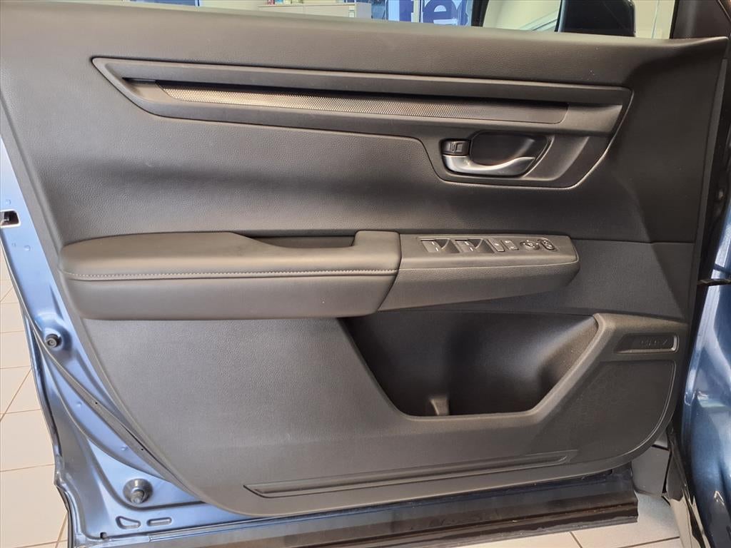 Equipped with CR-V LX, 4D Sport Utility, 1.5L I4 DOHC 16V, CVT, FWD, Bl, Black Cloth, Apple CarPlay/Android Auto, Auto High-beam Headlights, Bumpers: body-color, Exterior Parking Camera Rear, Fully automatic headlights, Spoiler, 4 Speakers, 4-Wheel Disc Brakes, 5.64 Axle Ratio, ABS brakes, Adaptive Cruise Control: Adaptive Cruise Control (ACC) with Low-Speed Follow, Air Conditioning, Automatic temperature control, Brake assist, Cloth Seat Trim, Compass, Delay-off headlights, Driver door bin, Driver vanity mirror, Dual front impact airbags, Dual front side impact airbags, Electronic Stability Control, Four wheel independent suspension, Front anti-roll bar, Front Bucket Seats, Front Center Armrest, Front reading lights, Illuminated entry, Knee airbag, Low tire pressure warning, Occupant sensing airbag, Outside temperature display, Overhead airbag, Overhead console, Panic alarm, Passenger door bin, Passenger vanity mirror, Power door mirrors, Power steering, Power windows, Radio data system, Radio: 160-Watt AM/FM Audio System, Rear anti-roll bar, Rear reading lights, Rear seat center armrest, Rear side impact airbag, Rear window defroster, Rear window wiper, Remote keyless entry, Security system, Speed control, Speed-sensing steering, Speed-Sensitive Wipers, Split folding rear seat, Steering wheel mounted audio controls, Tachometer, Telescoping steering wheel, Tilt steering wheel, Traction control, Trip computer, Turn signal indicator mirrors, Variably intermittent wipers, and Wheels: 17 Steel w/Covers.