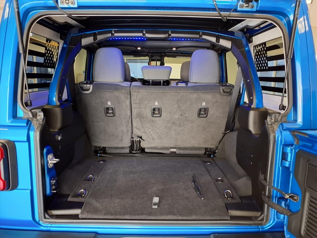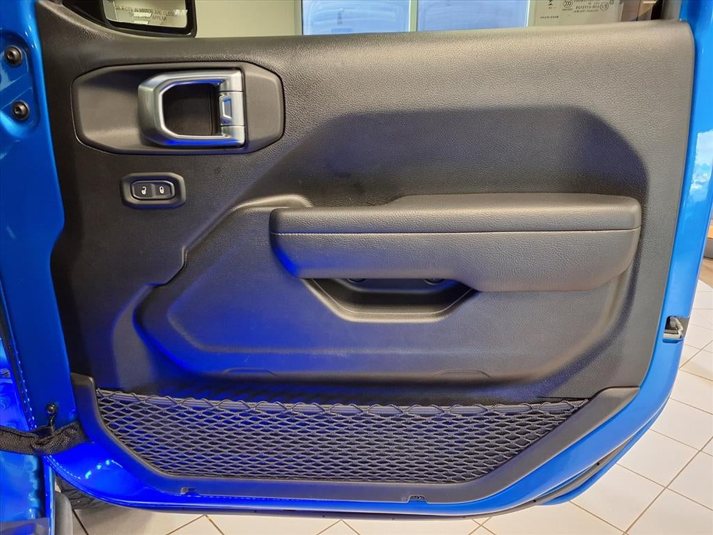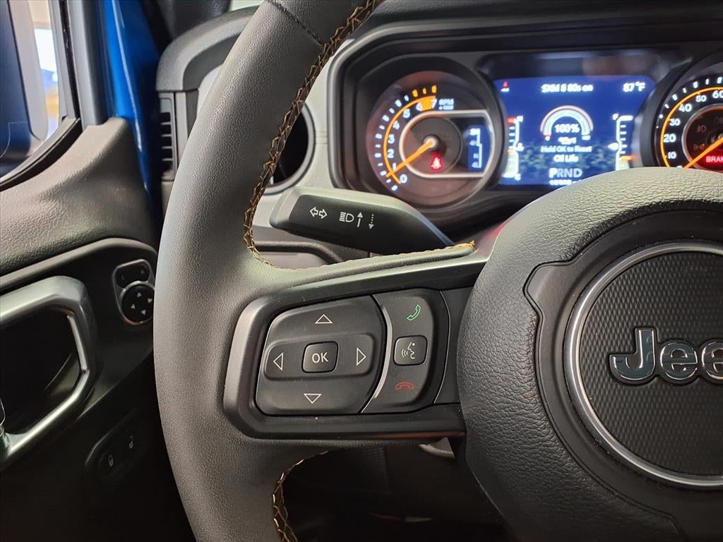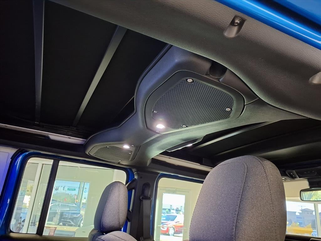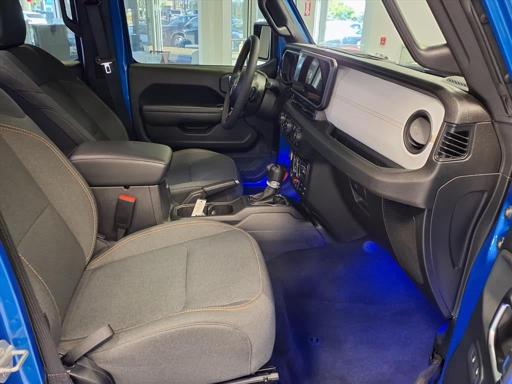 Equipped with Convenience Group (2-Door Passive Entry, Front Door Locks, Air Conditioning w/Auto Temperature Control, Cluster 7.0 TFT Color Display, Emergency/Assistance Call, and Remote Start System), Quick Order Package 24W Willys (97 MPH Vehicle Max Speed Calibration), Safety Group, Xtreme 35 Tire Package (35 Tire Suspension, 4.56 Rear Axle Ratio, MOPAR Hinge-Gate Reinforcement, and Wheels: 17 x 8 Machined w/Black Pockets), Wrangler Willys, 4D Sport Utility, 3.6L V6 24V VVT, 8-Speed Automatic, 4WD, Hydro Blue Pearl Coat, Black Cloth, 110 MPH Vehicle Max Speed Calibration, 4-Wheel Disc Brakes, 8 Speakers, ABS brakes, Air Conditioning, AM/FM radio, Apple CarPlay/Android Auto, Aux Battery, Brake assist, Cloth Low-Back Bucket Seats, Compass, Delay-off headlights, Driver door bin, Driver vanity mirror, Dual front impact airbags, Dual front side impact airbags, Electronic Stability Control, Front anti-roll bar, Front Bucket Seats, Front Center Armrest w/Storage, Front fog lights, Front reading lights, Integrated roll-over protection, Low tire pressure warning, Non-Lock Fuel Cap w/o Discriminator, Normal Duty Suspension, Occupant sensing airbag, Outside temperature display, Overhead airbag, ParkView Rear Back-Up Camera, Passenger door bin, Passenger vanity mirror, Power steering, Power Top Quarter Window Storage Bag, Radio data system, Radio: Uconnect 5 w/12.3 Display, Rear anti-roll bar, Rear reading lights, Rear Window Defroster, Rear Window Wiper/Washer, Removable Rear Quarter Windows, Sky 1-Touch Power Top, Speed control, Split folding rear seat, Steering wheel mounted audio controls, Stop-Start Dual Battery System, Tachometer, Telescoping steering wheel, Tilt steering wheel, Traction control, Trip computer, Variably intermittent wipers, and Wheels: 17 x 7.5 Black Steel Styled.